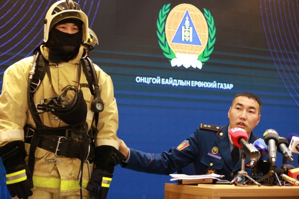 Мэдээллийг ОБЕГ-ын Санхүү, ар талын газрын дарга, хурандаа Я.Гантөмөр, Гал түймэртэй тэмцэх газрын хэлтсийн дарга, дэд хурандаа П.Соронзонболд нар өгч байна.